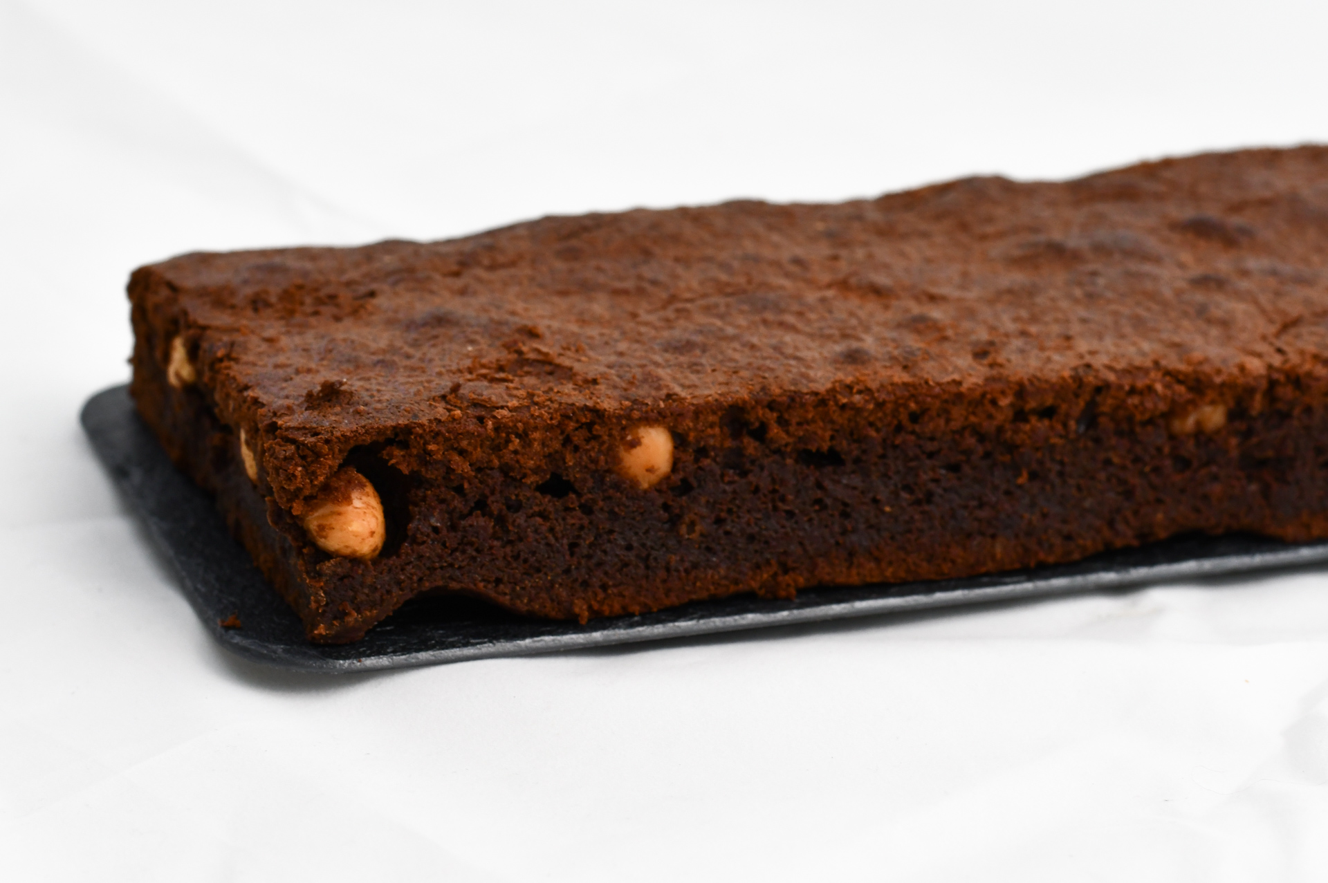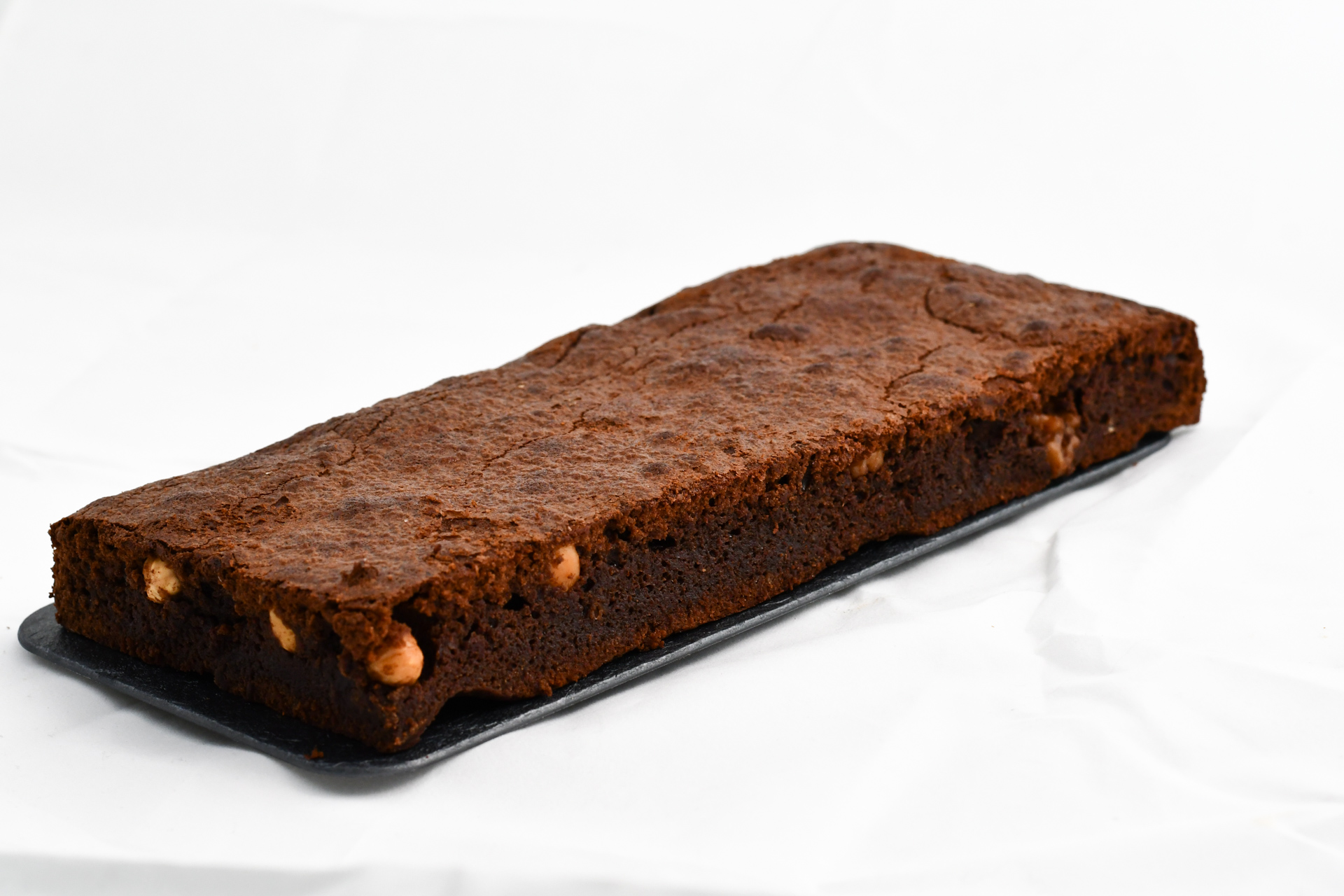 Brownie tradicional de chocolate con nueces y avellanas, ideal para consumir solo o acompañarlo de helado.