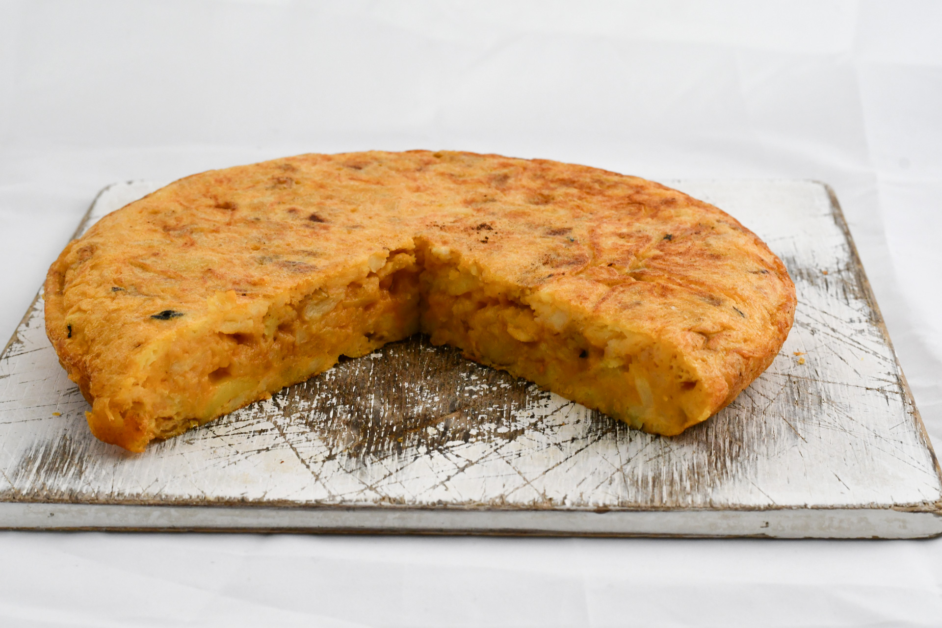 Puedes pedirla entera o cortadita en pinchos o bocados. También puedes añadirle palillos o mini tenedores sin coste adicional.